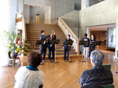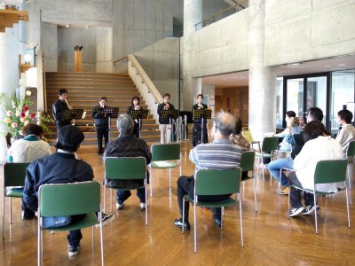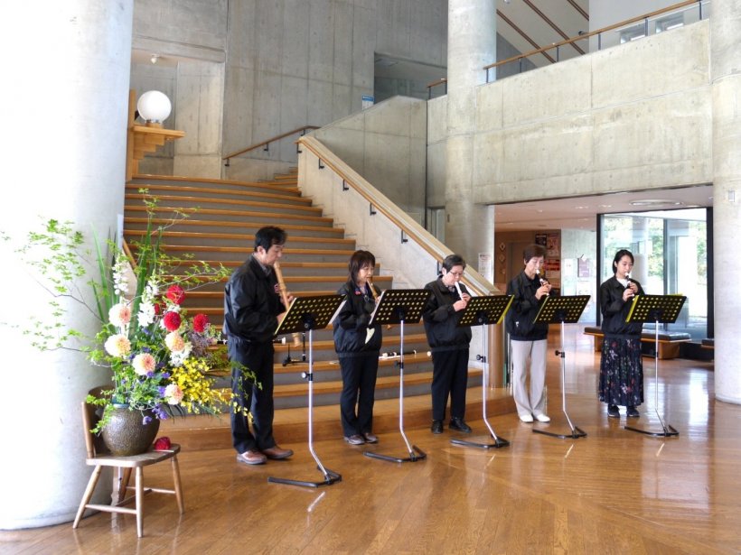 今回は“リコーダーの調べ”で、花音(かのん)のみなさんに演奏していただきました。暖かい日差しの中、リコーダーの音のハーモニーがプラザロビーに心地よい空間を作り出していました。