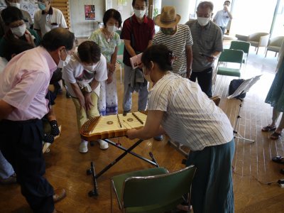 最後に観客の皆様からキムという楽器についての質問があり、それに答えるKONさん。