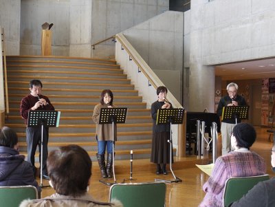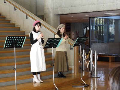 本日が初の発表の舞台とのことでしたが、とても堂々とした演奏で、久しぶりに太陽が差し込むロビーはとても心地よい空間となりました。 後半には、リコーダーアンサンブル花音のメンバーもゲスト出演し、賑やかなステージとなりました。