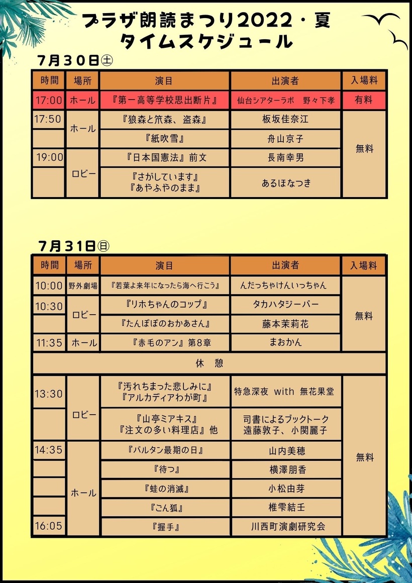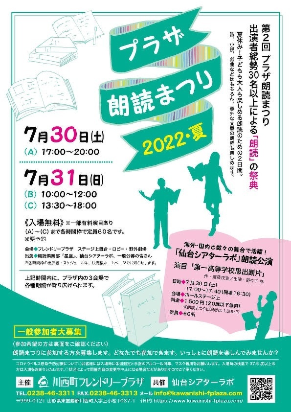 【出演時間】一般参加者10分以内、朗読倶楽部「星座」20分以内。出ハケ込み。