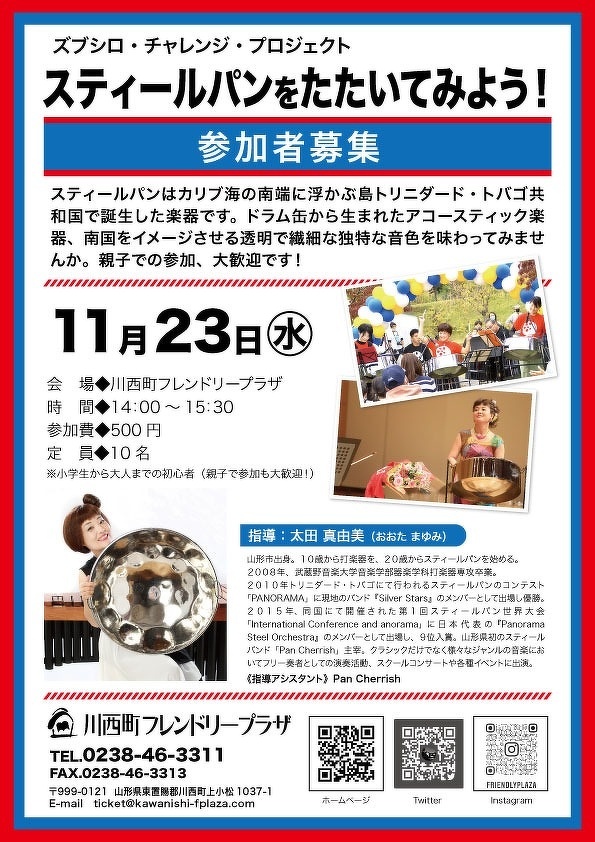 ズブシロ・チャレンジ・プロジェクトスティールパンをたたいてみよう!定員に達しました。