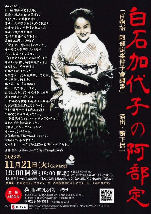 白石加代子の阿部定百物語 阿部定事件予審調書アフタートークもあります!