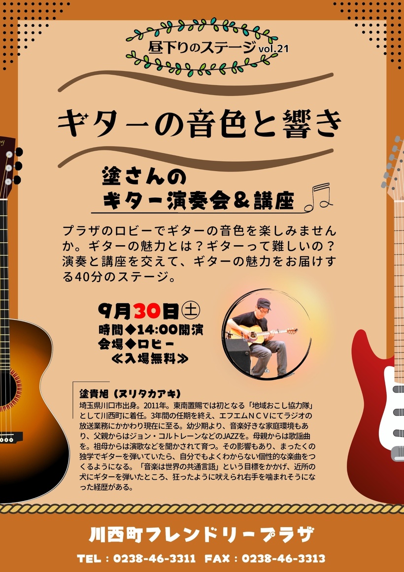昼下りのステージvol.21ギターの音色と響き塗さんのギター演奏会&講座
