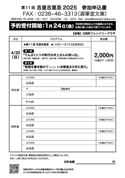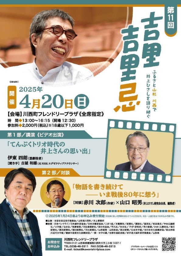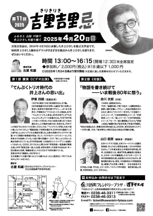 井上ひさしを偲ぶ文学忌第11回 吉里吉里忌2025ふるさと 山形 川西で井上ひさしを語り継ぐ