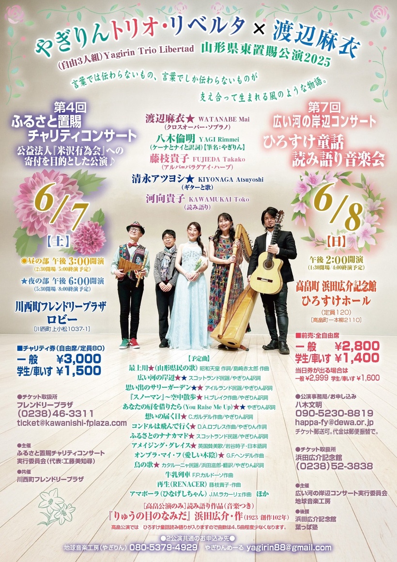 第4回 ふるさと置賜チャリティコンサートやぎりんトリオ・リベルタ×渡辺麻衣山形県東置賜公演2025