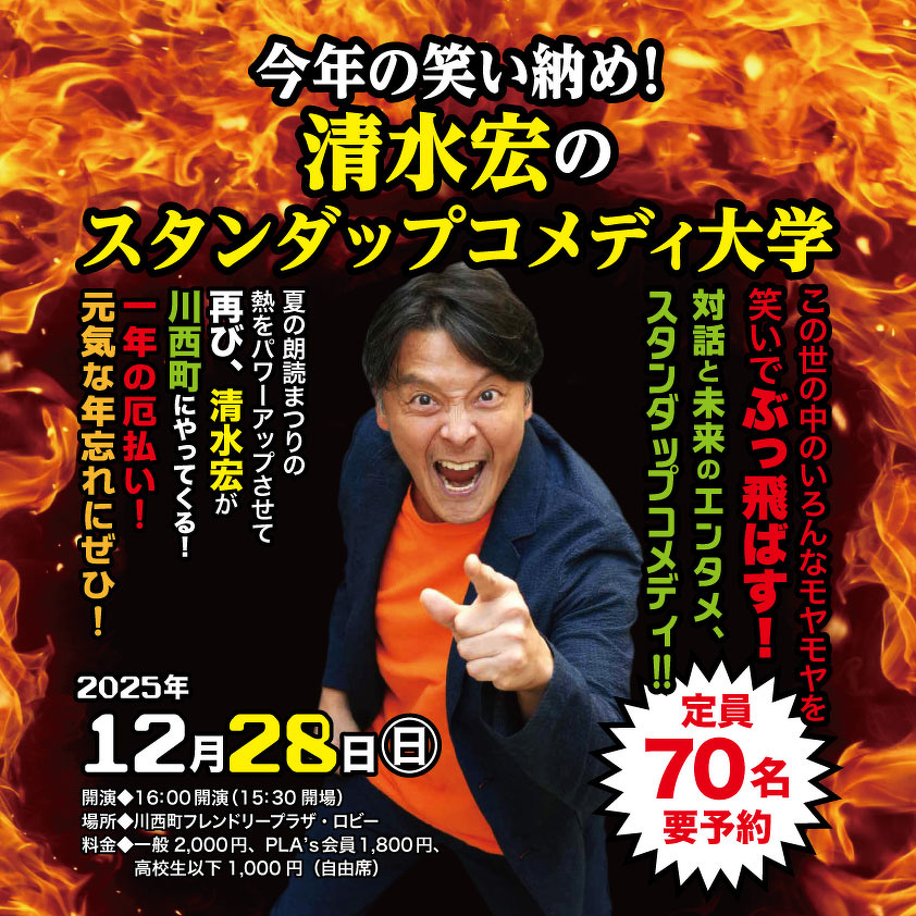 2025年の笑い納め!清水宏のスタンダップコメディ大学一年の厄払い! 元気な年忘れにぜひ!
