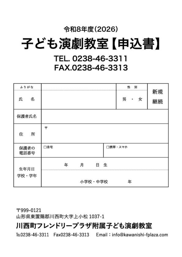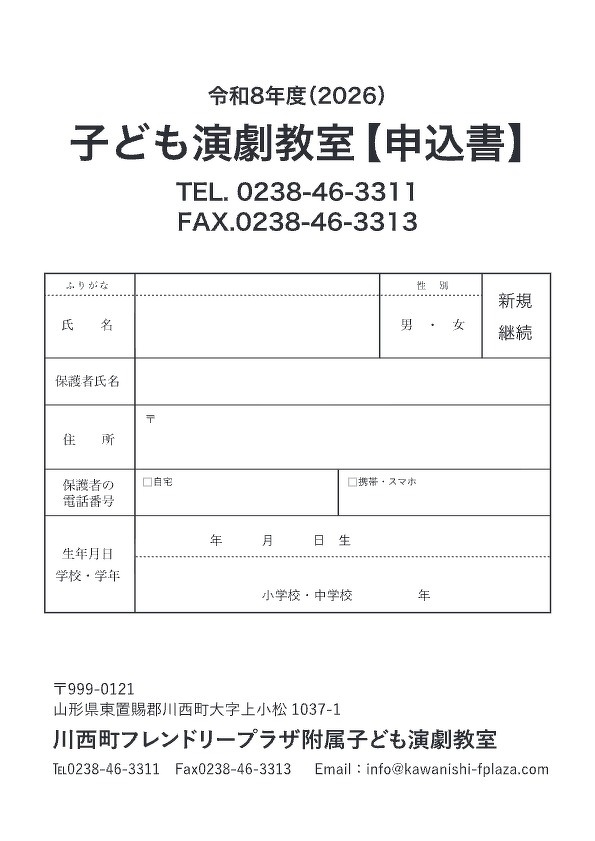 令和8年度 川西町フレンドリープラザ附属子ども演劇教室2026新しい仲間大募集!演劇をはじめよう!!