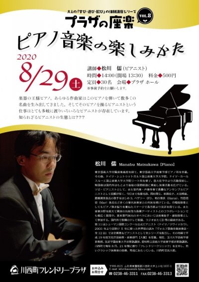 大人の「学び・遊び・歓び」の体験講座シリーズプラザの座楽Vol.8 ピアノ音楽の楽しみかた知られざるピアニストの生態とは??