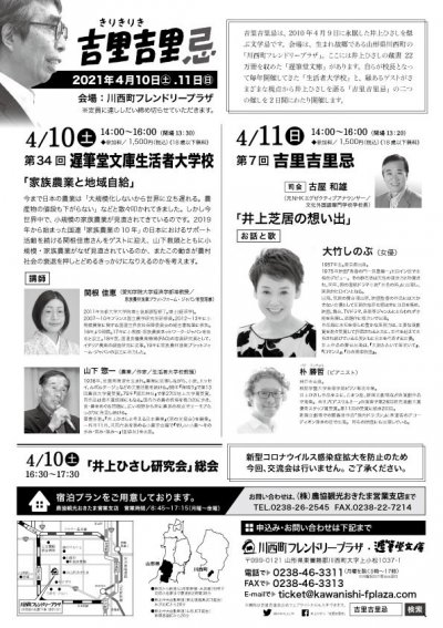 きりきりき吉里吉里忌2021ふるさと 山形 川西で井上ひさしを語り継ぐ