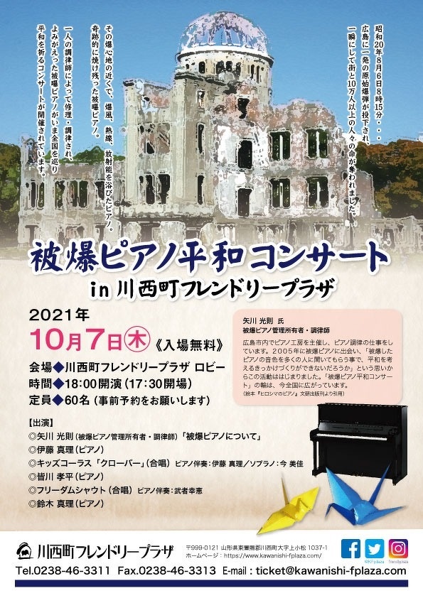 被爆ピアノ平和コンサートin川西町フレンドリープラザ