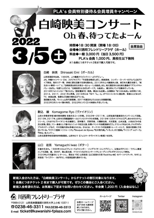PLA´S会員特別優待&会員増員キャンペーン白崎映美コンサート~Oh春、待ってたよーん~