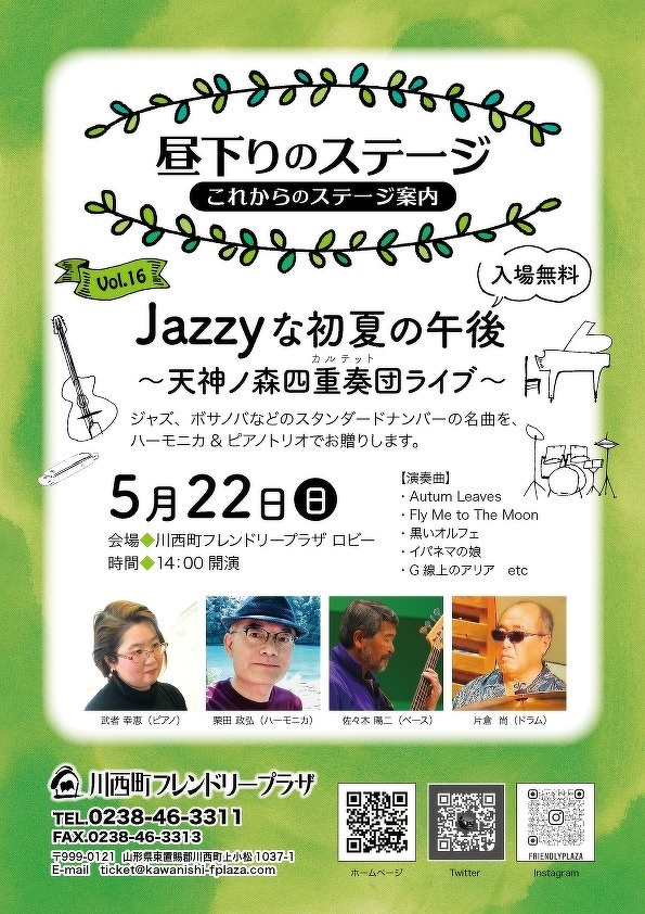 プラザで色んな音楽を楽しみましょう♪昼下りのステージ5月のステージ案内